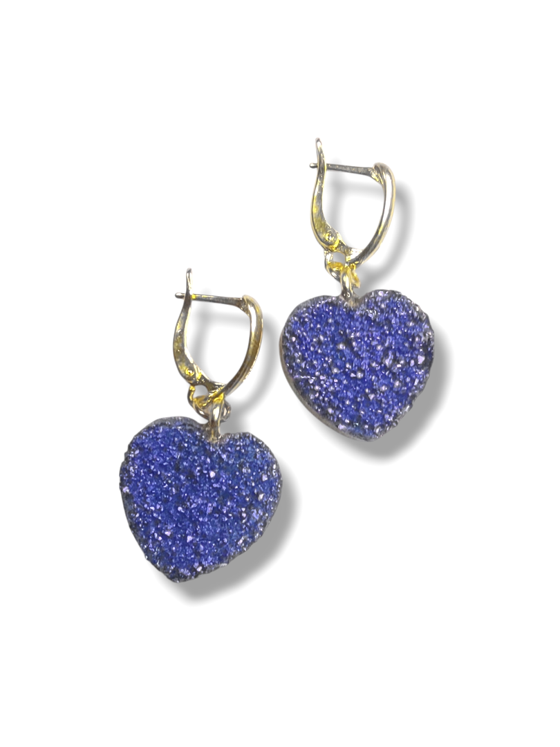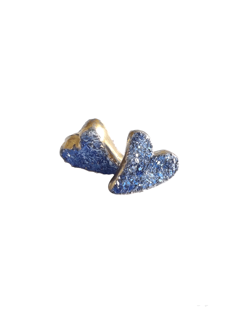 Orecchini a lobo con lavorazione in resina effetto diamantato di colore blu cobalto profilato in oro.