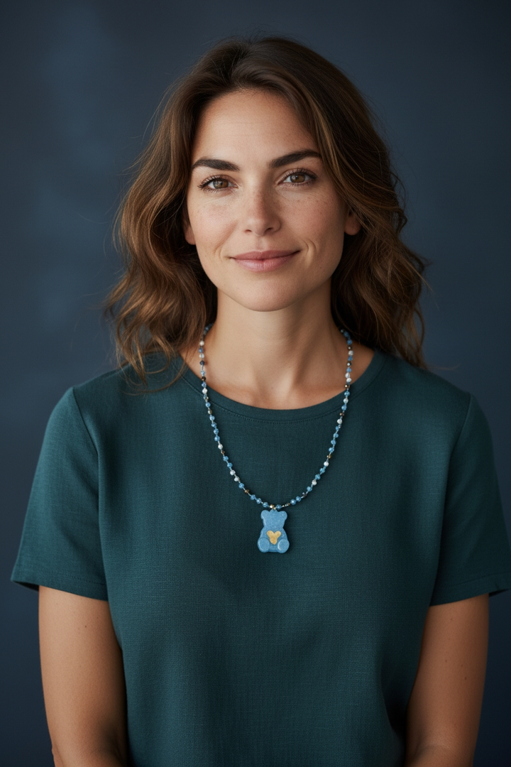 Collana cuore pieno color verde petrolio con contorno in oro.