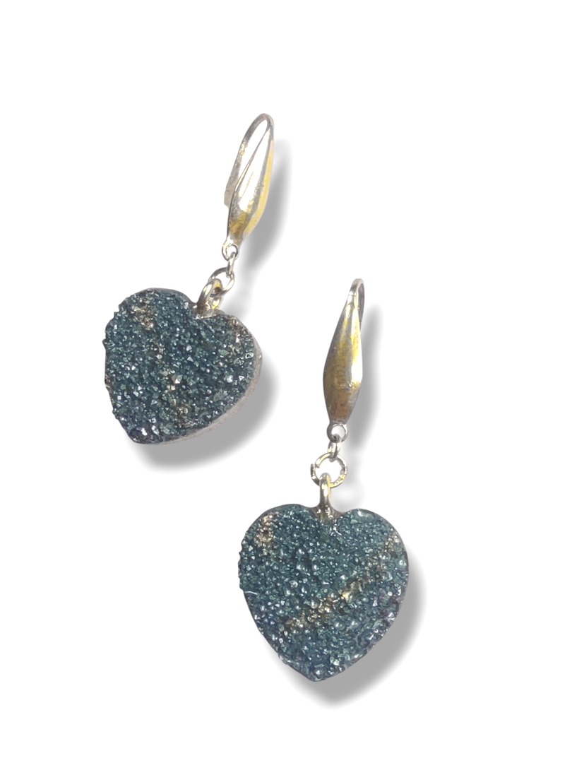 Orecchini con monachella e bordature in color oro realizzati in resina con effetto diamantato in 2 tonalità di verde. Bordature e monachelle in tinta oro