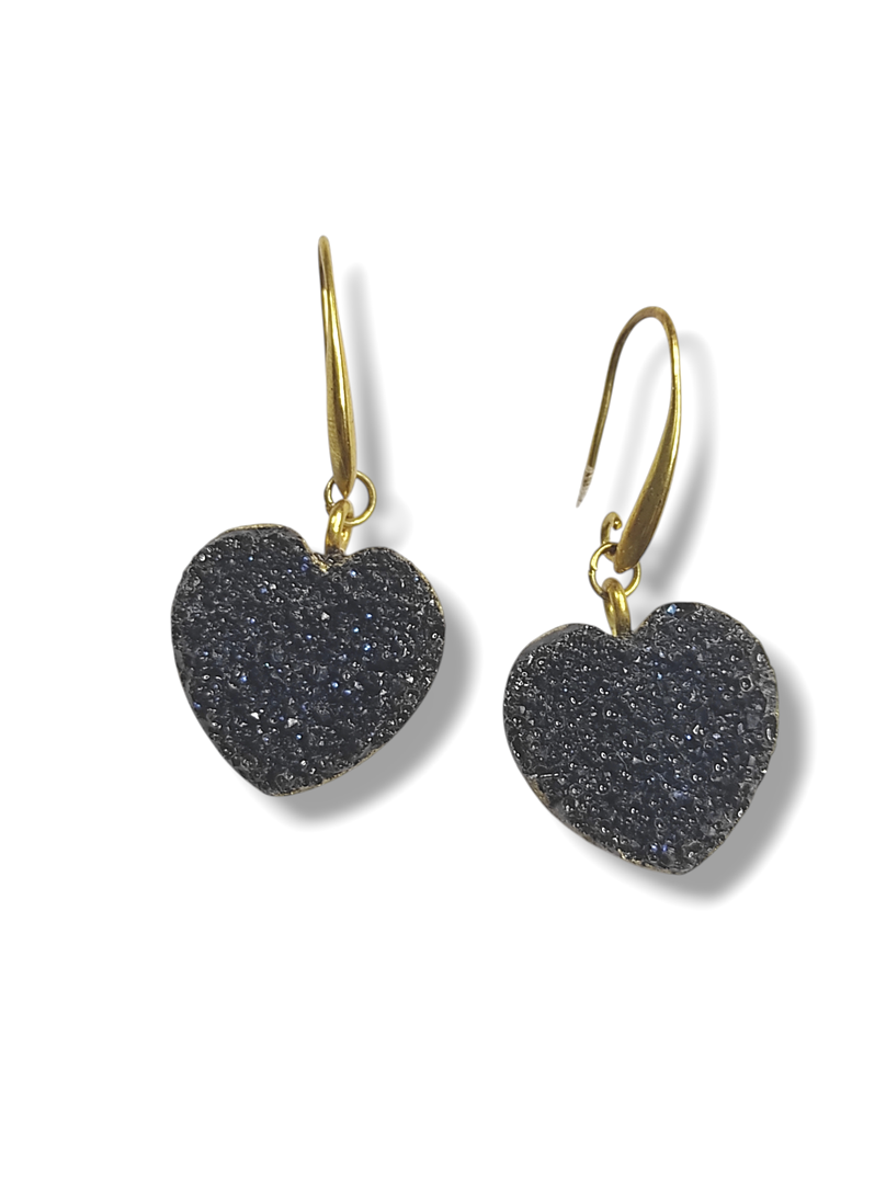 Orecchini della lunghezza totale di cm 4 (a partire dal lobo) con monachella in ottone dorato nikel free. Bordo del cuoricino dorato.