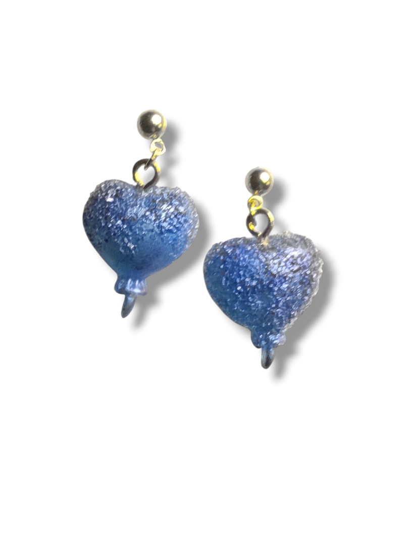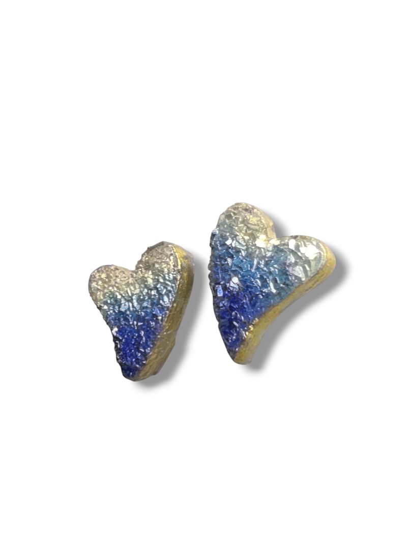 Orecchini a lobo con lavorazione in resina effetto diamantato di colore blu sfumato e profilato in oro.