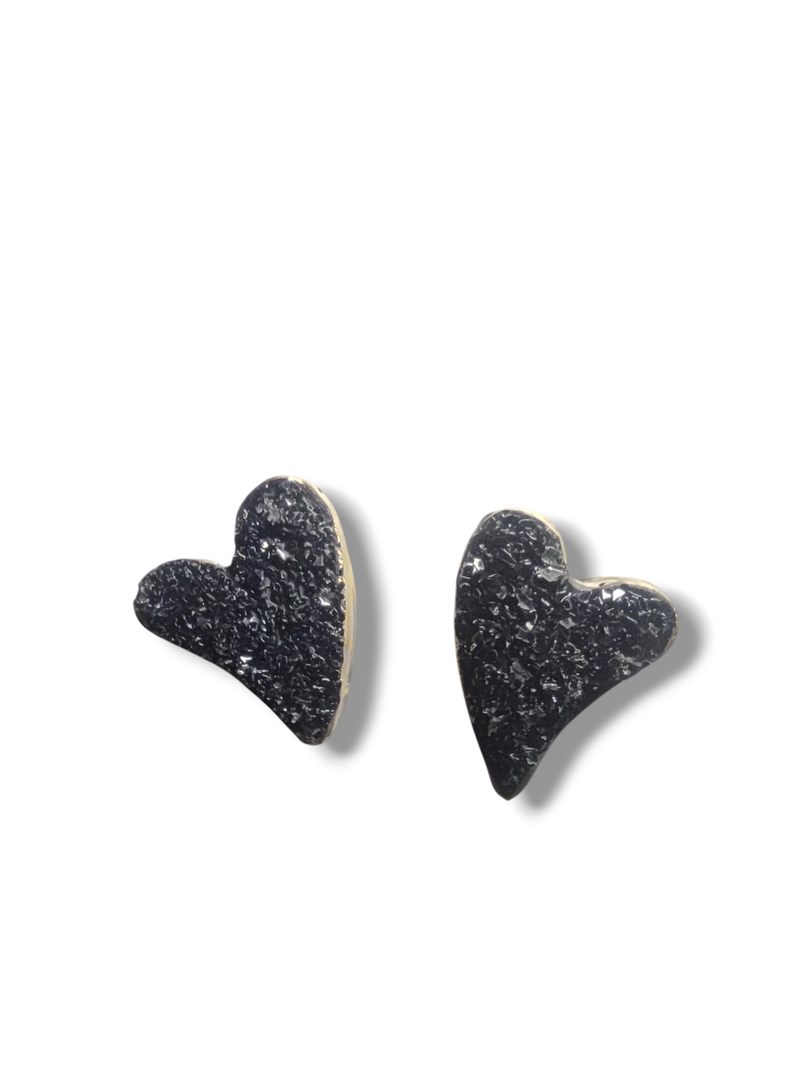 Orecchini a lobo con lavorazione in resina effetto diamantato di colore nero sfumato profilato in oro.