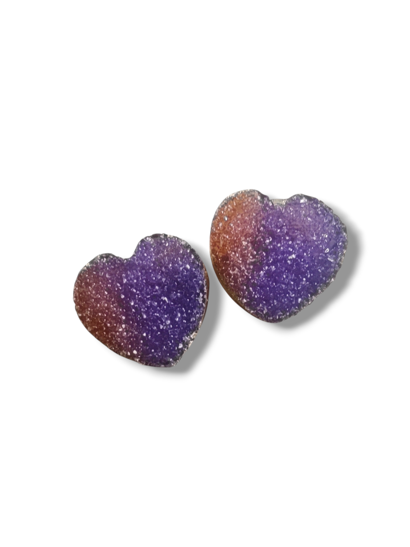 Orecchini con monachella e bordature in color oro realizzati in resina con effetto diamantato sfumati dall'azzurro al fucsia. Bordature e monachelle in tinta oro.