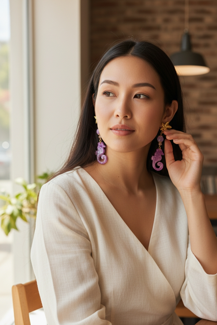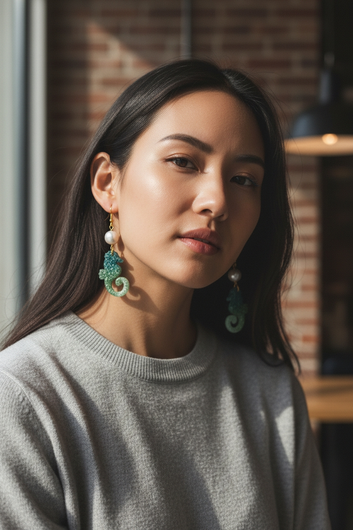 Questi orecchini, realizzati a mano, catturano la bellezza e l'eleganza del cavalluccio marino, simbolo di grazia e serenità. La loro leggerezza li rende ideali per essere indossati tutto il giorno, aggiungendo un tocco di originalità e classe a qualsiasi outfit.