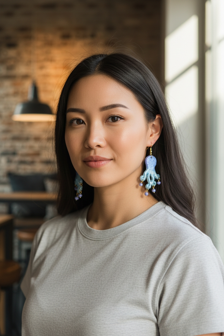 Perfetti sia per un look casual che per occasioni speciali, questi orecchini, con polpi azzurri e cristalli dorati, sono un omaggio alla bellezza del mare e alla creatività artigianale.