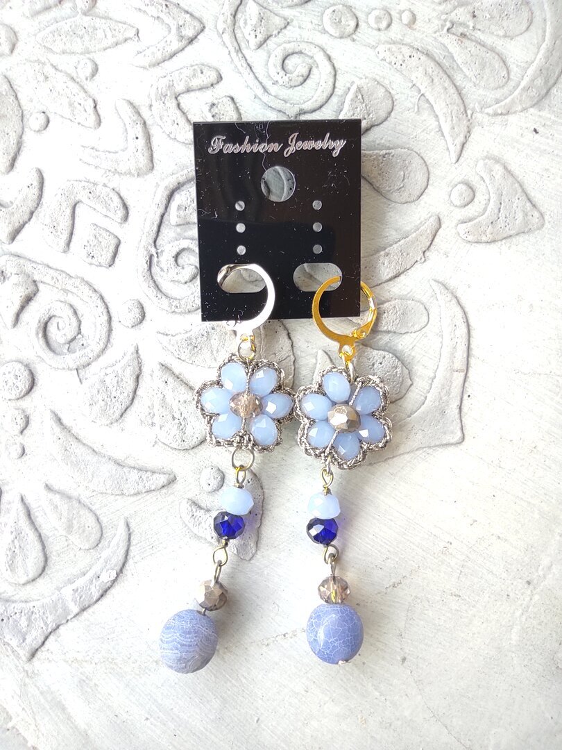 Molto delicato questo orecchino con fiorellino azzurro, lavorazione a crochet.