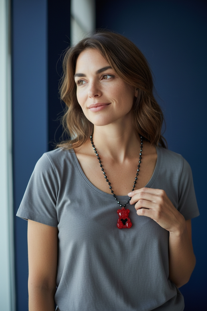 Porta con te un tocco di eleganza con la nostra collana con perle in ceramica rosse e bordeaux.