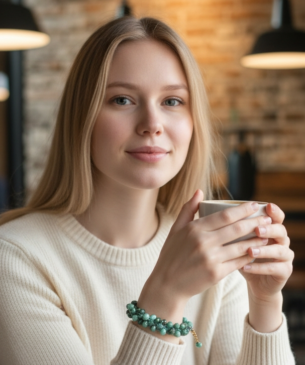 Porta con te un tocco di eleganza con la nostra collana con perle in ceramica verdi e rosa.
